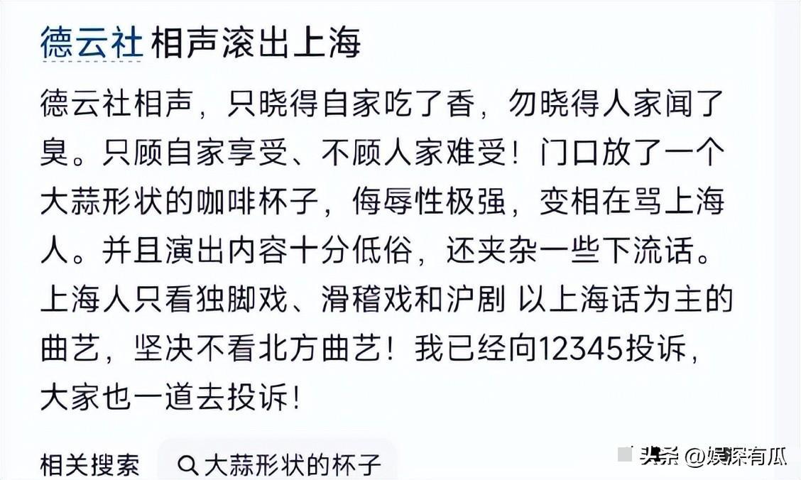 将其所代表的北派相声贬低为大蒜,而上海的海派文化则是属于咖位,品质更加高雅。