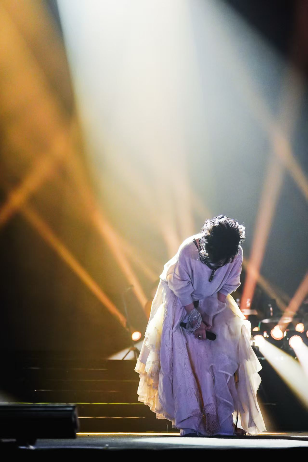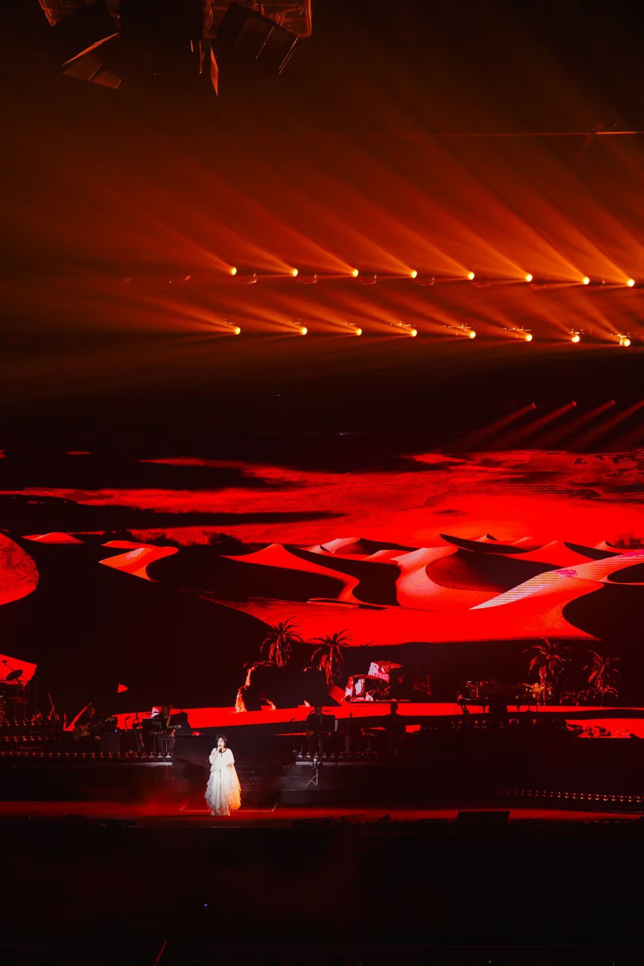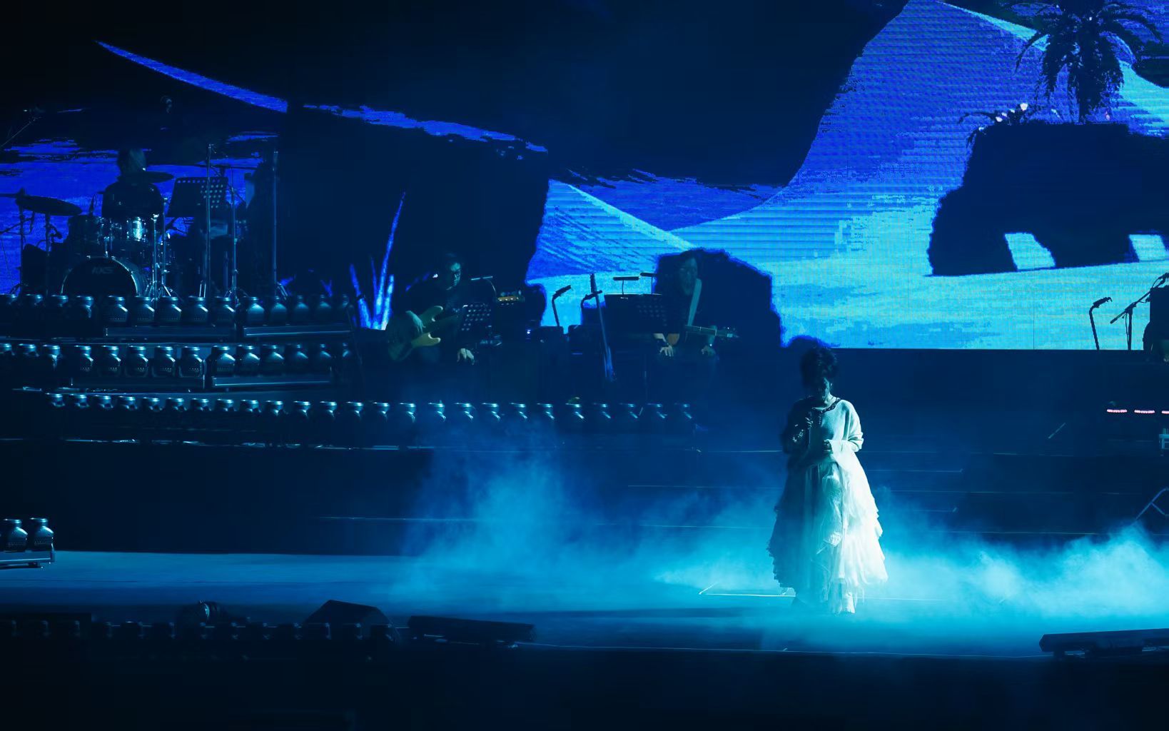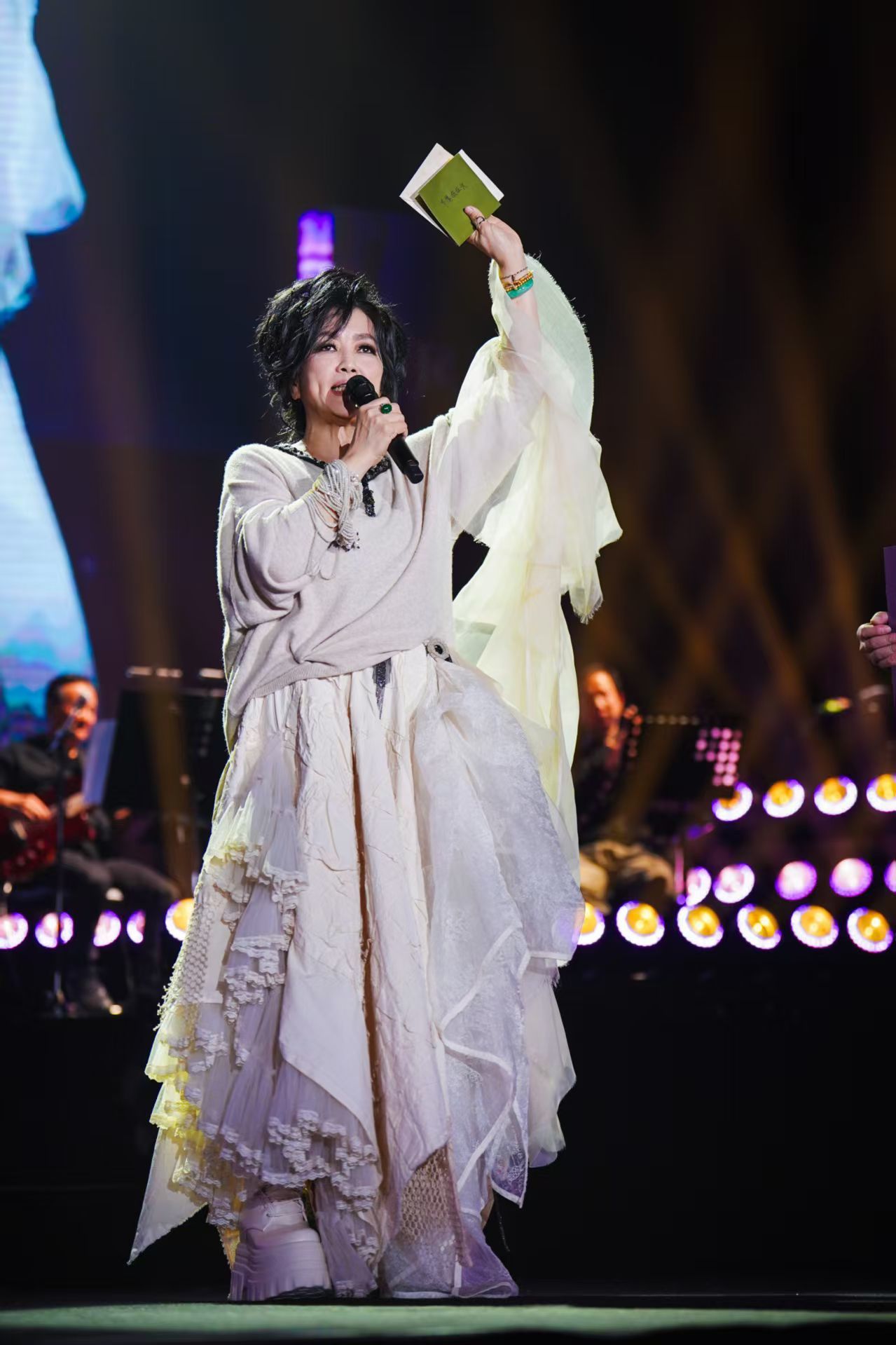 当晚,追光缓缓聚焦舞台中央,齐豫一袭宽松白色波西米亚风长裙优雅登场。开口瞬间,清亮通透的嗓音穿透全场,空灵辽远,温润绵长,瞬间将现场观众带入专属齐豫的音乐世界。升级后的2.0版本在视觉呈现上极具巧思,将齐豫歌声中独有的空灵意境与人文底蕴,以具象化的视觉语言完美诠释。《飞鸟与鱼》的婉转悠扬、《梦田》的温柔治愈,每一首经典旋律响起时,舞台灯光便随之流转,歌声与光影交织,氛围感直接拉满。