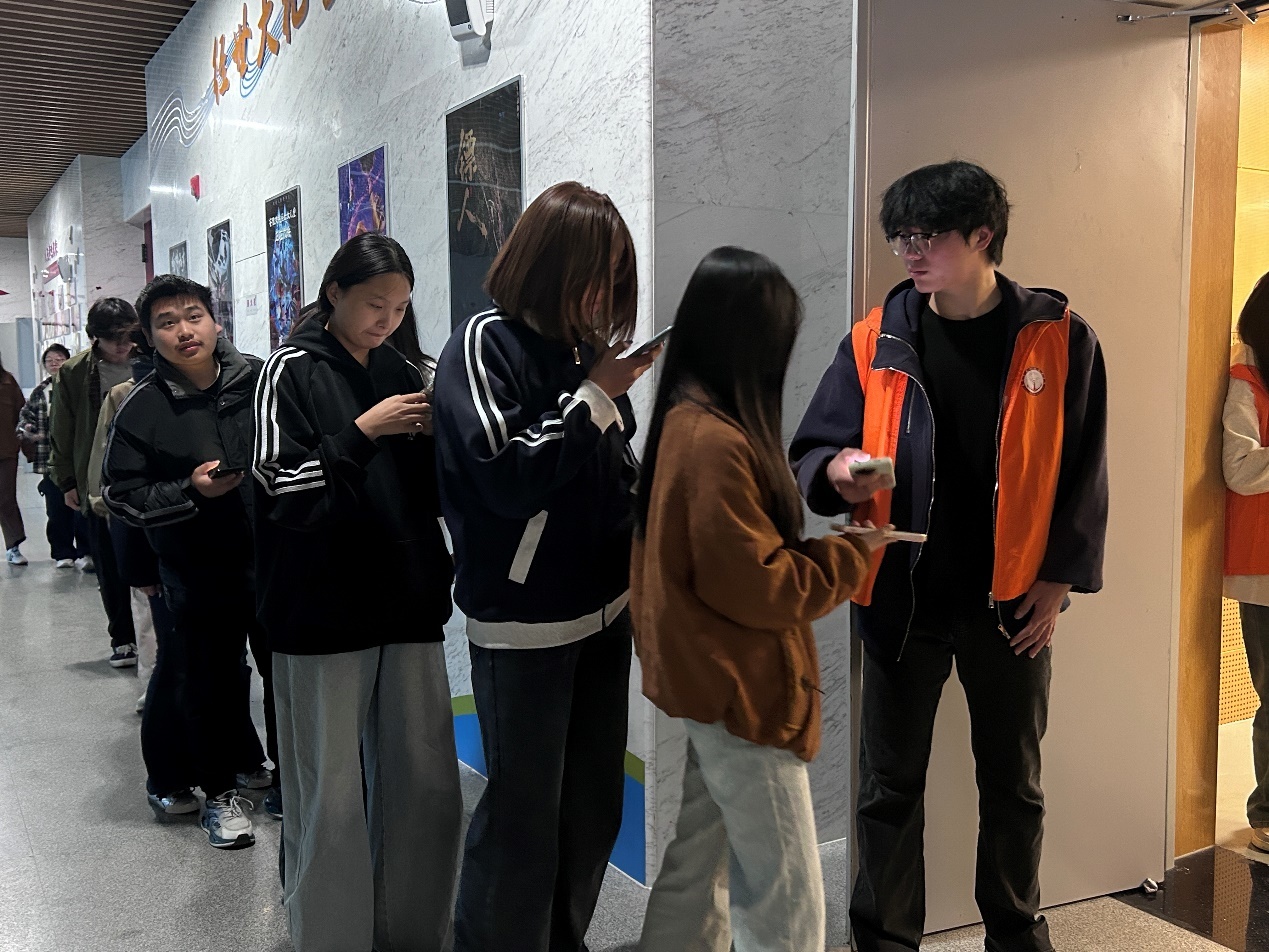 学生们陆续排队入场观影