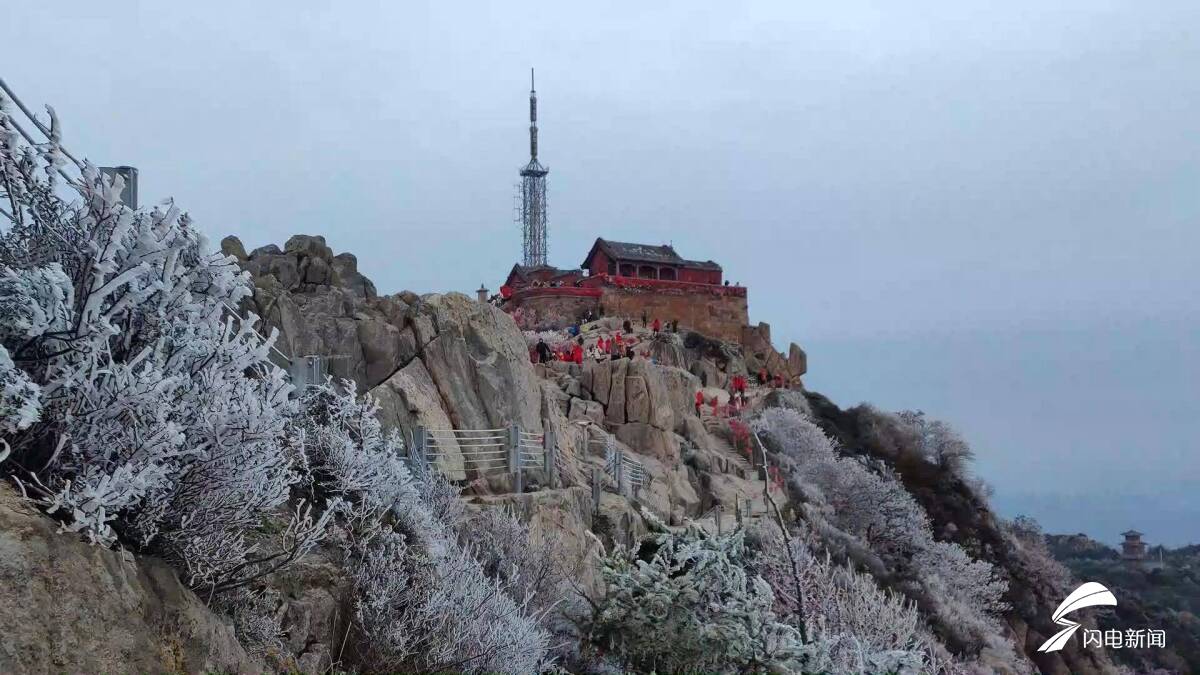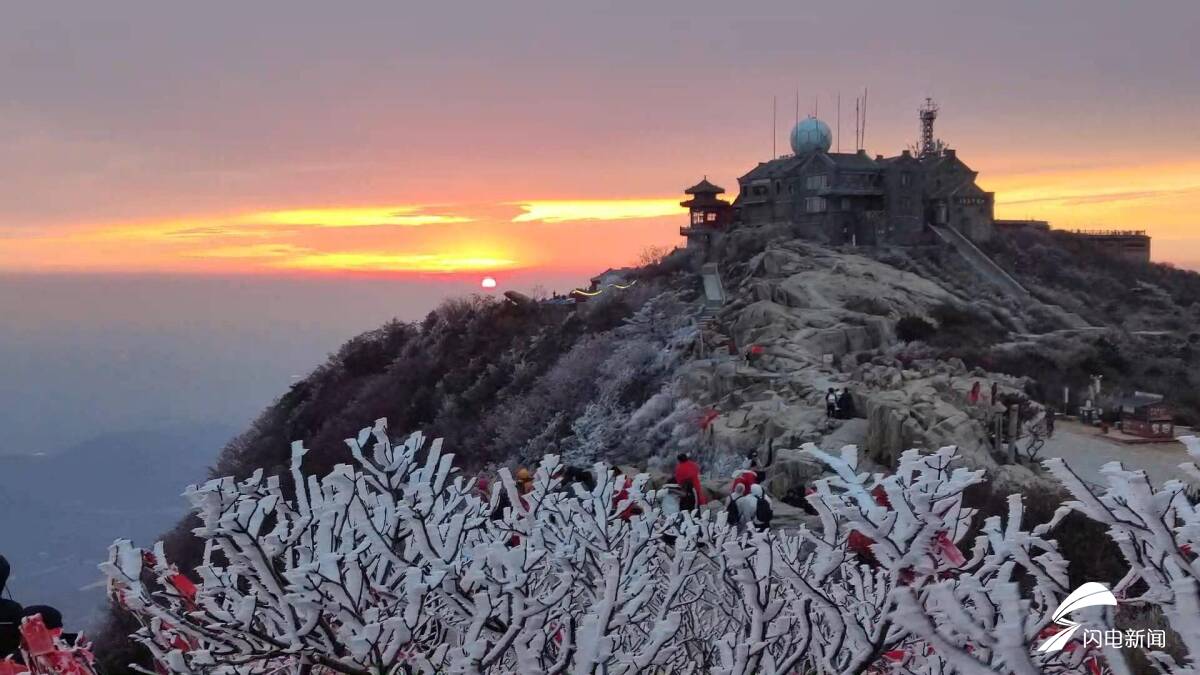 CYQY-生活与科技齐鲁网·闪电新闻10月20日讯 随着气温走低,10月20日清晨,泰山之巅出现雾凇美景。深秋的泰山还未褪去层林尽染的余韵,寒夜已悄然为岱顶缀满了晶莹的雾凇。伴随日出金色的霞光,岱顶玉树琼枝,宛如人间仙境。快来泰山之巅,遇见日出与雾凇的浪漫邂逅。