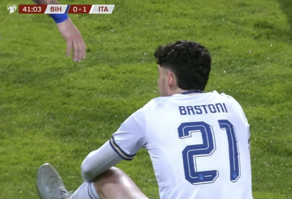 第41分钟,巴斯托尼防守时犯错,直接铲倒对方的单刀球员,被红牌罚下,直接导致意大利队场面陷入被动;