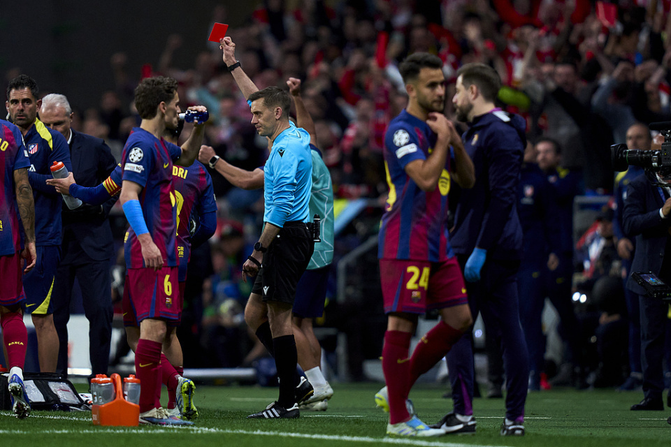 第79分钟,埃里克-加西亚从背后破坏瑟洛特单刀机会,被主裁出示红牌罚下,巴萨两回合比赛均有球员染红。