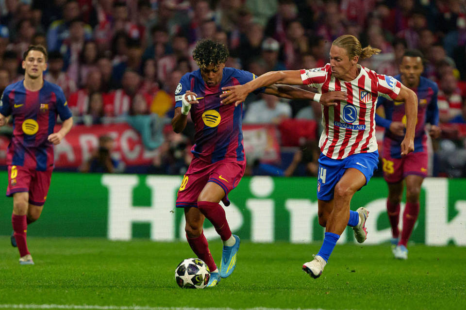 首回合比赛,巴萨在主场0-2输给马竞,次回合做客大都会球场,开场仅4分钟巴萨便扳回一城。朗格莱回传失误,亚马尔单刀破门。第24分钟,奥尔莫直塞,费兰-托雷斯突入禁区小角度爆射得手,巴萨将总比分扳成2-2。