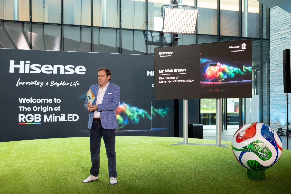 海信全球营销中心欧洲区总裁韩建民表示,海信推出的世界杯定制产品 RGB-Mini LED系列新品,将为全球用户提供最高标准的显示技术,重新定义观赛体验。此次双方围绕VAR显示的合作,以及在国际足联总部举办RGB-Mini LED产品发布会,体现了双方紧密的合作伙伴关系已经超越了单纯的品牌赞助,而是在长期的信任、共享创新和合作的基础上,将足球和技术创新充分融合在一起。