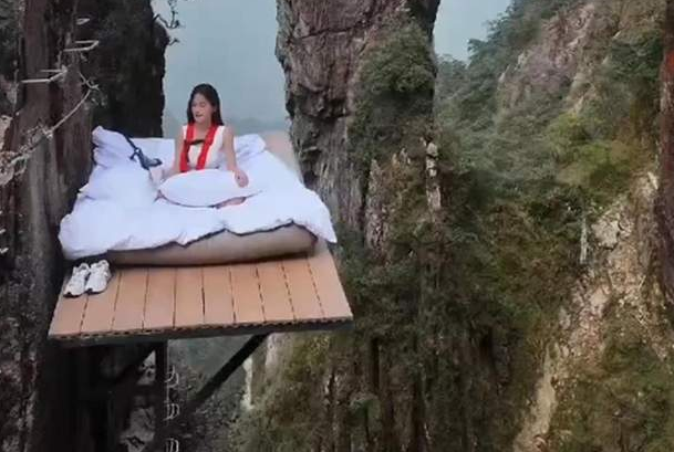 景区回应“海拔1600米悬崖睡床项目走红”:体重超200斤不能玩,敢体验的游客不多