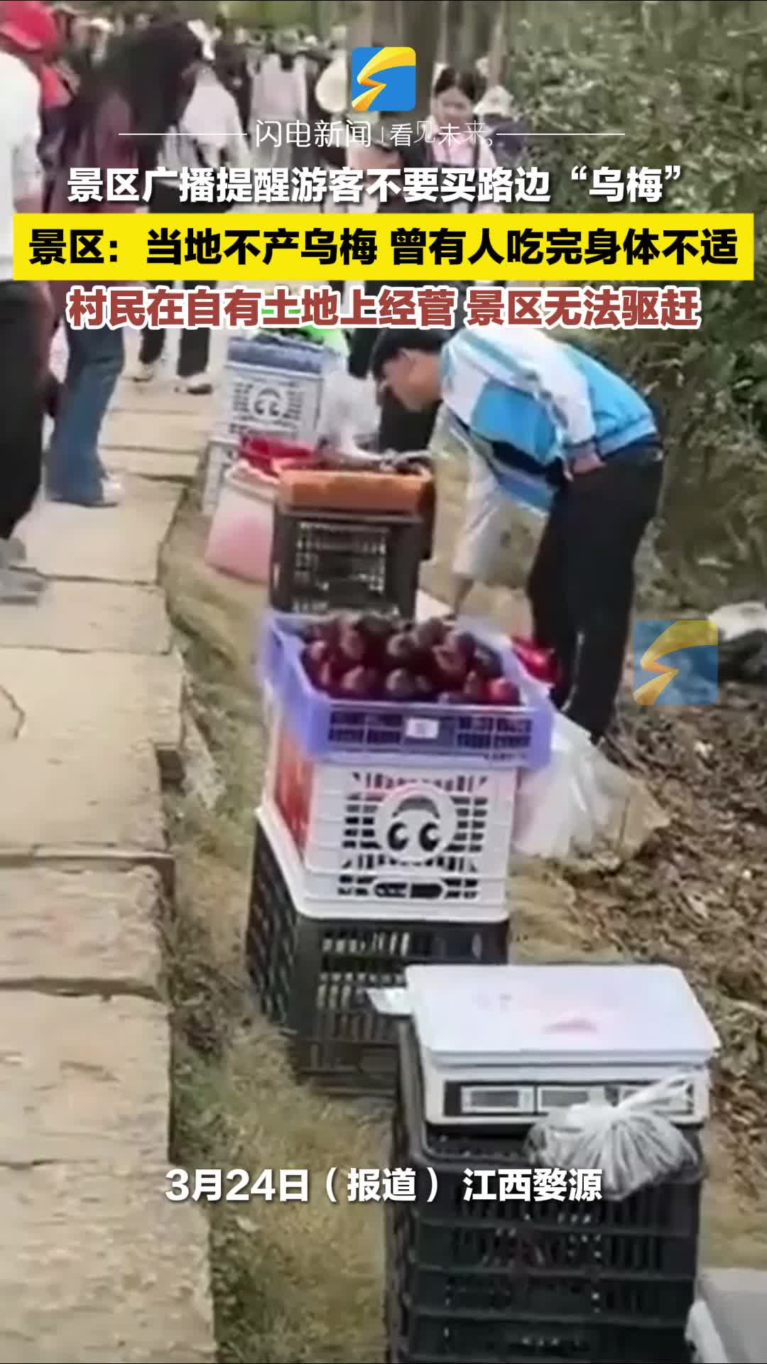 江西一景区广播提醒游客不要买路边“乌梅” 景区回应:曾有人吃完身体不适