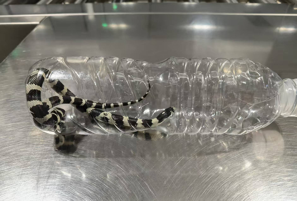 口袋里突然探出蛇头!杭州机场安检查获旅客携带活蛇过检