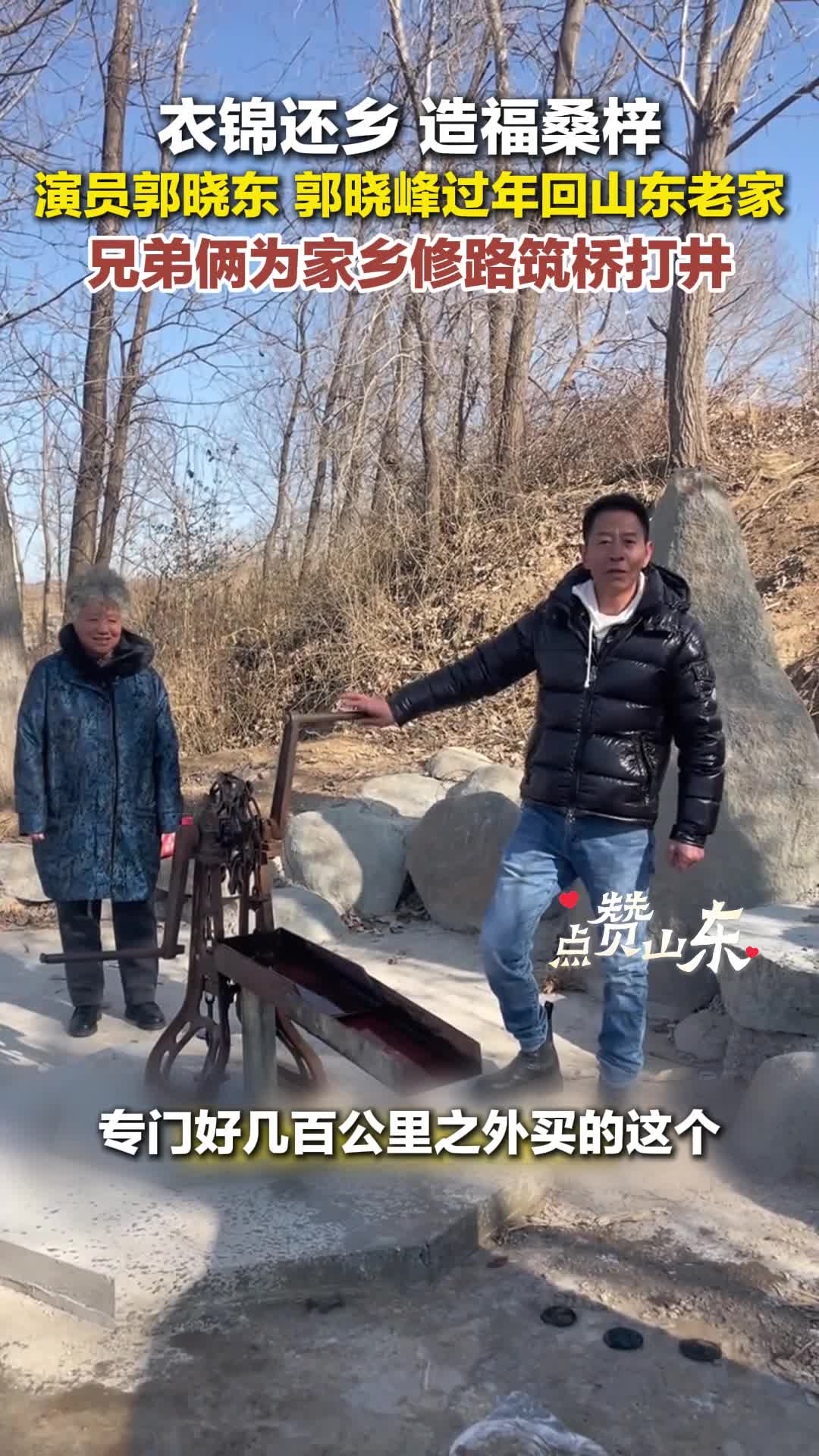 演员郭晓东 郭晓峰过年回山东老家 兄弟俩为家乡修路筑桥打井