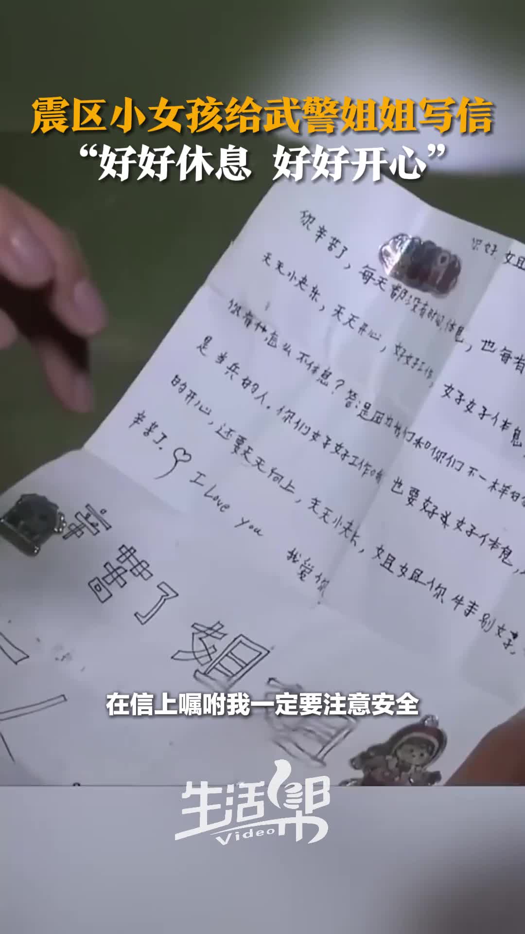 震区小女孩给武警姐姐写信 “好好休息 好好开心”