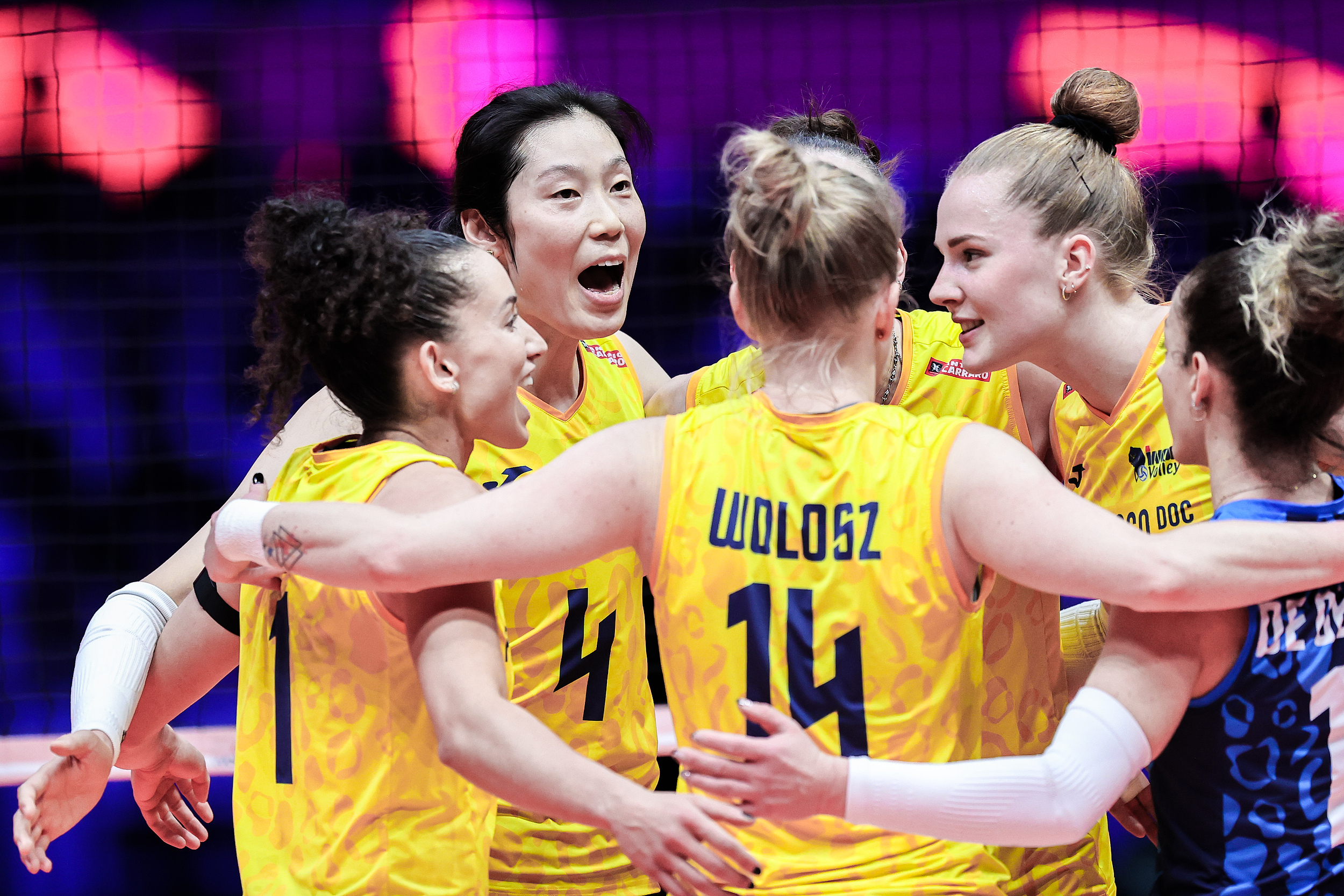 朱婷、李盈莹隔网对抗,科内利亚诺夺得女排世俱杯冠军