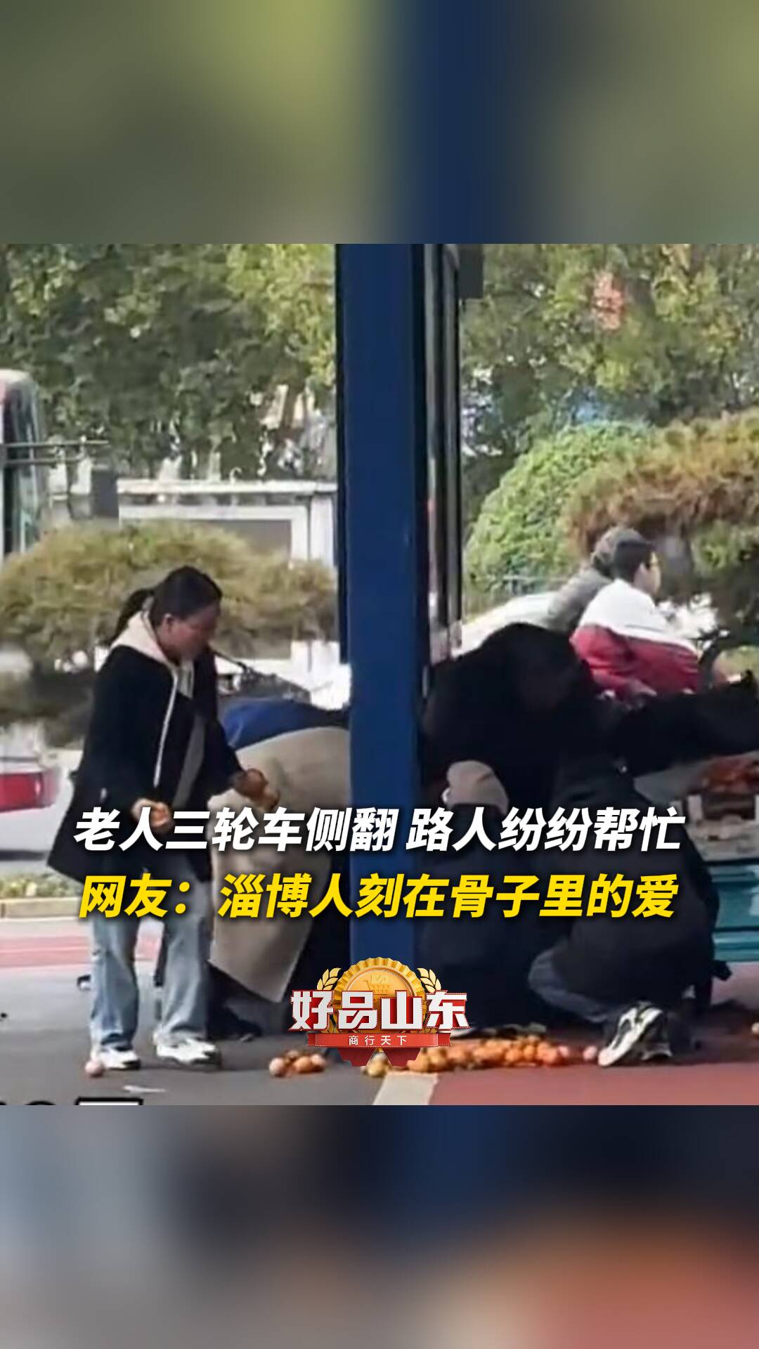 老人三轮车侧翻 路人纷纷帮忙 网友:淄博人刻在骨子里的爱