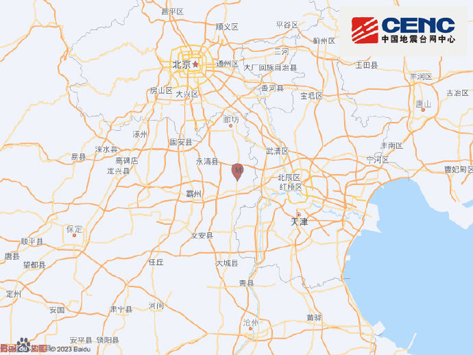 河北廊坊市安次区发生2.1级地震,震源深度10千米