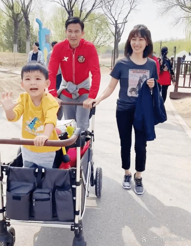 从媒体发出的照片可以看到,何家劲的妻子穿着黑色皮衣,妆容清淡但不失美貌,看起来年纪大约在三四十岁,看起来也是“老夫少妻”。