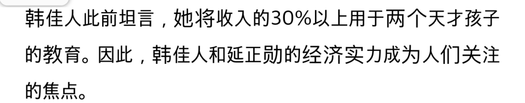 韩佳人把收入的30%都投入进他们的教育。