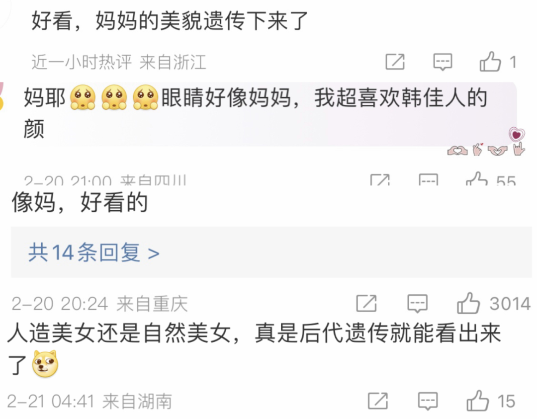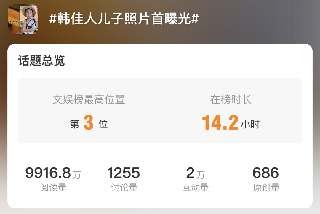 前两天,韩佳人儿子的正面照首次被曝光,