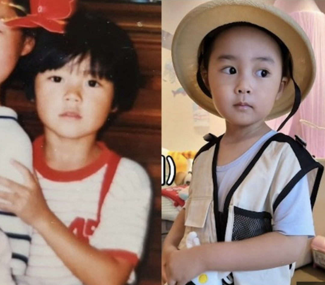 对比来看,他和妈妈小时候还真有点像哈?
