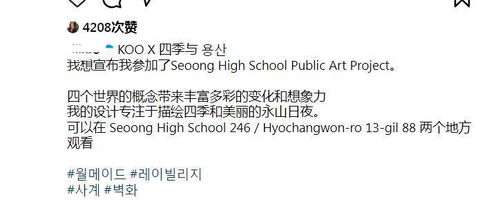 2月23日,具俊晔分享最新个人动态,他回到韩国给大家留下街头艺术的气息。