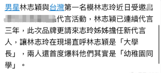 近日,林志颖林志玲共同出席活动,林志玲称呼林志颖为“大学长”,现场爆料二人其实是幼儿园同学,相识已超40年。 未经允许不得转载:CYQY-生活与科技 » 林志玲爆料和林志颖是幼儿园同学 二人相识超40年