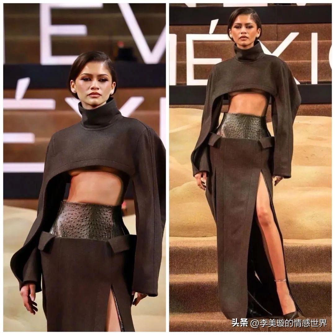 在《沙丘2》的另一场宣传红毯上,赞达亚的高定款“机械姬”造型,也是很炸裂的,而且,也露了肚脐,按照中国人的养生观念,这样露肚脐很容易着凉拉稀。