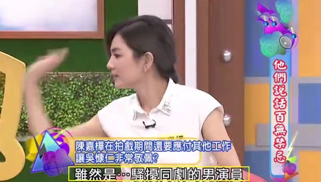 说话间,Ella一只手抓住吴慷仁,另一只手抓住另一位男演员,两位男演员不为所动,表情尴尬。