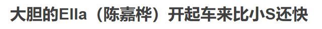 都说小S很放得开,但在湾湾娱乐圈,大家却有共识:大胆的Ella开起车来比小S还快。