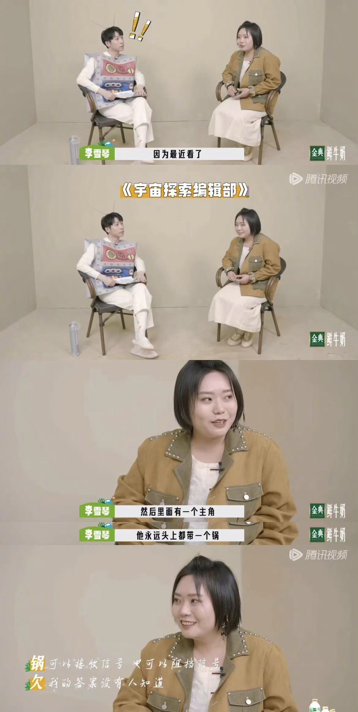 此前,李雪琴在节目上还曾为王一通的角色写过三行诗:“锅可以接收信号,也可以阻挡信号,欠我的答案没有人知道。”