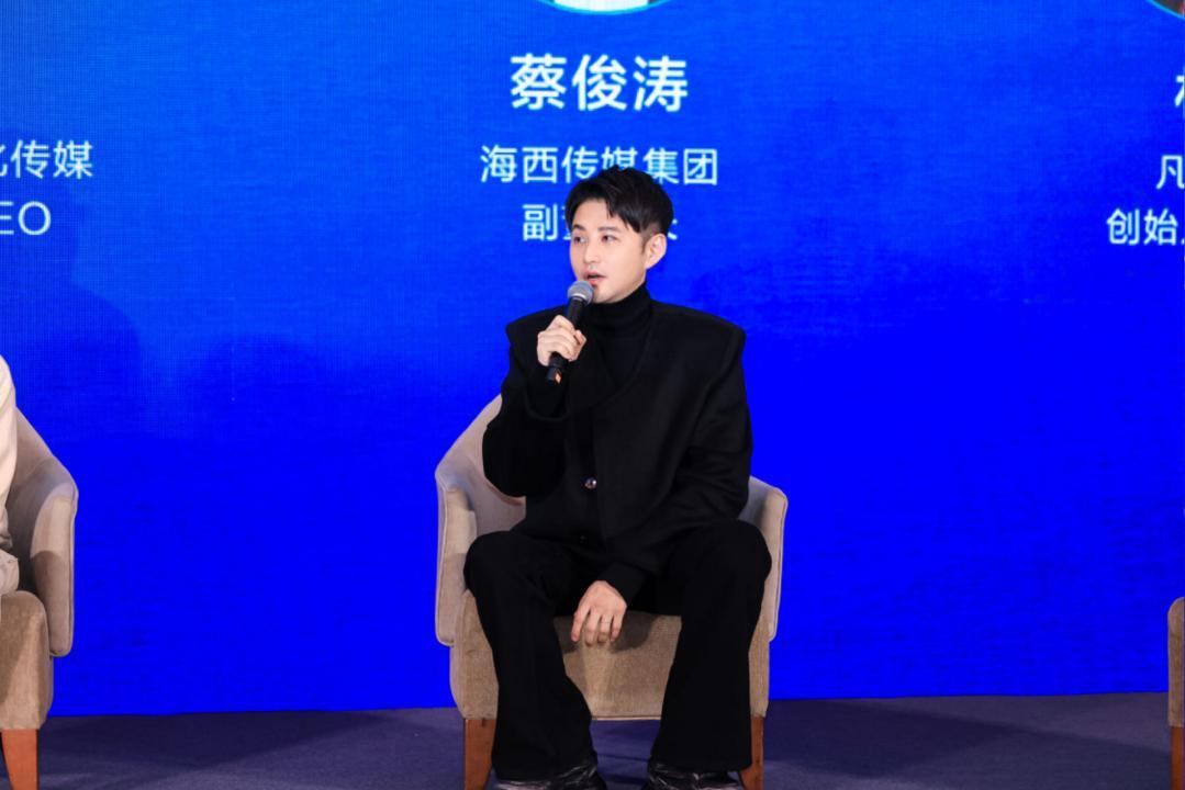 在圆桌对话环节,蔡俊涛与来自各领域的行业翘楚共同探讨从野蛮生长到精品探索的微短剧市场精品化之路。他分享了北京海西传媒集团在微短剧创作方面的经验和心得,强调内容为王、情感真挚的创作理念。他提到,北京海西传媒集团一直以来都坚持以精品短剧为核心,通过深入挖掘故事内涵和人物情感,打造出一系列深受观众喜爱的作品。