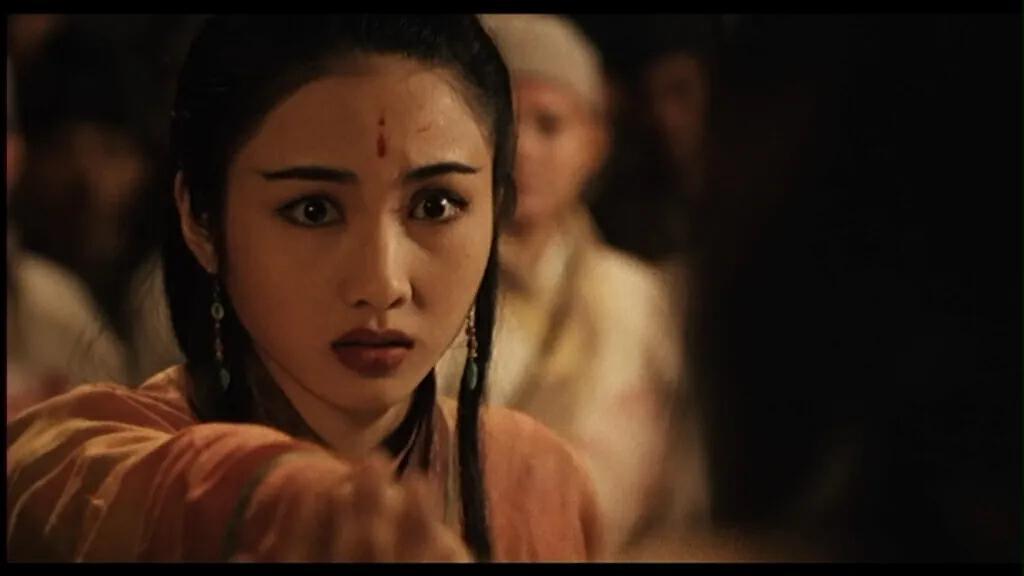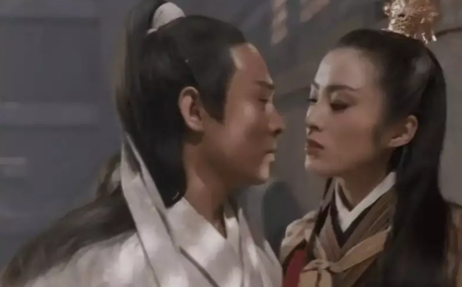 她能用攻气十足又不乏魅惑的眼神将李连杰饰演的张无忌逼得无法直视,也能在爱上对方后流露出小女子的娇羞。