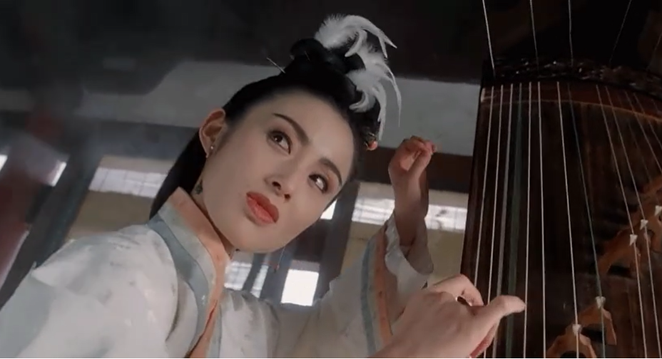 仍是当年那一袭白衣,依旧头戴金冠,长发及腰,又现抚琴骑马,张敏还是那个张敏。