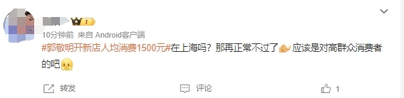 对于郭敬明这家新店,有网友认为郭敬明审美很好,人均1500元的价格也不是不可以。而且在上海这个价位也比较正常。