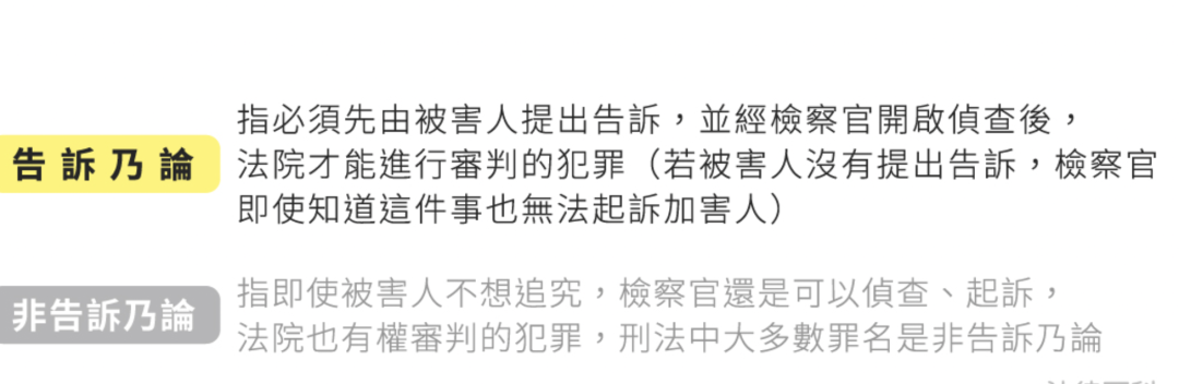 不过,强吻性质被认定成了性骚扰,性骚扰属于“告诉乃论罪”,即——必须要受害者先向侦查机关提起调查请求“告诉”,之后才再进入“公诉”。而“非告诉乃论罪”检察官可以直接提起公诉,进入法院程序。