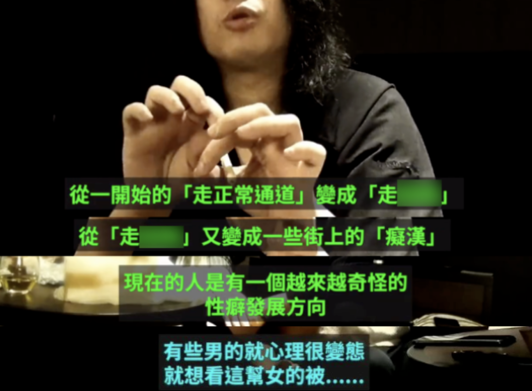 他明目张胆地对女同事咸猪手,谈论自己爱幼齿,但那时都被“节目效果”说辞合理化了。