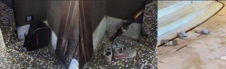 客厅台阶下东一只西一只的拖鞋