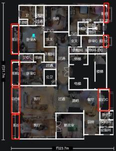 沿着户型南北两侧依次排开,每个卧室都有阳台