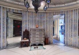 这一鲜明风格在这栋豪宅中体现得淋漓尽致:昂贵的石材,繁复的花纹和线条,华丽的灯具