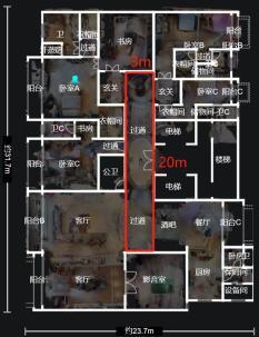 比如,一条足足有约3*20米长的过道,占据了户型的最核心位置