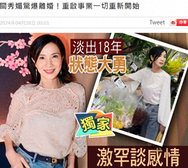 4月28日,58岁关秀媚接受港媒采访宣布离婚,二十多年的爱情长跑遗憾以离婚收场。