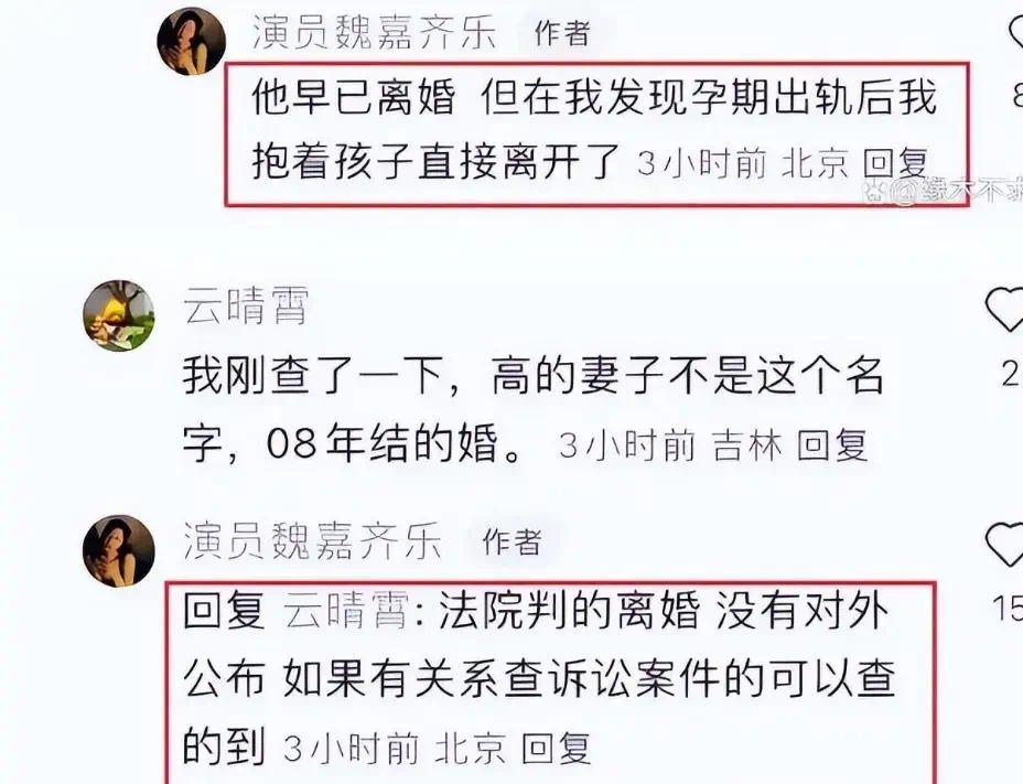 但令人疑惑的是,魏嘉的高亚麟的关系似乎也不正常,她告诉网友高亚麟早就离婚,但此时的她也不能称作“正室”,因为两人并没有领证。