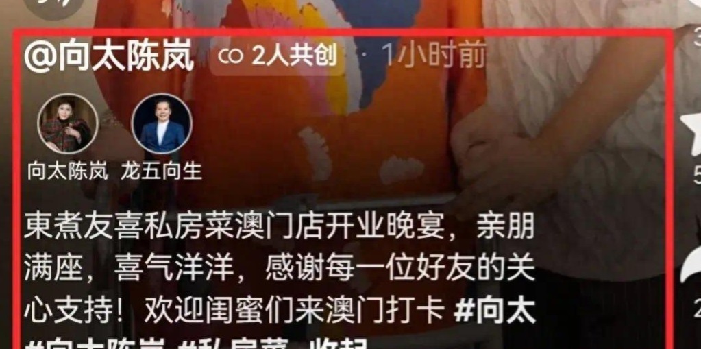 5月27日,向太高调晒出了自己新店开业晚宴的视频。令人没想到的是,众多许久不见的明星大咖也罕见露面,为向太的新店站台撑场,画面一经曝光,让不少的网友惊喜不已,因此引发了大家的阵阵热议和围观。