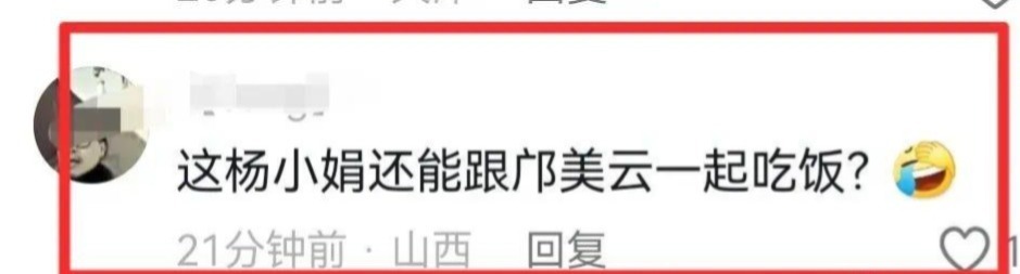 其实,邝美云和杨小娟不仅仅是同桌吃饭,两人在大合影的环节,还十分亲密的站在了一起。