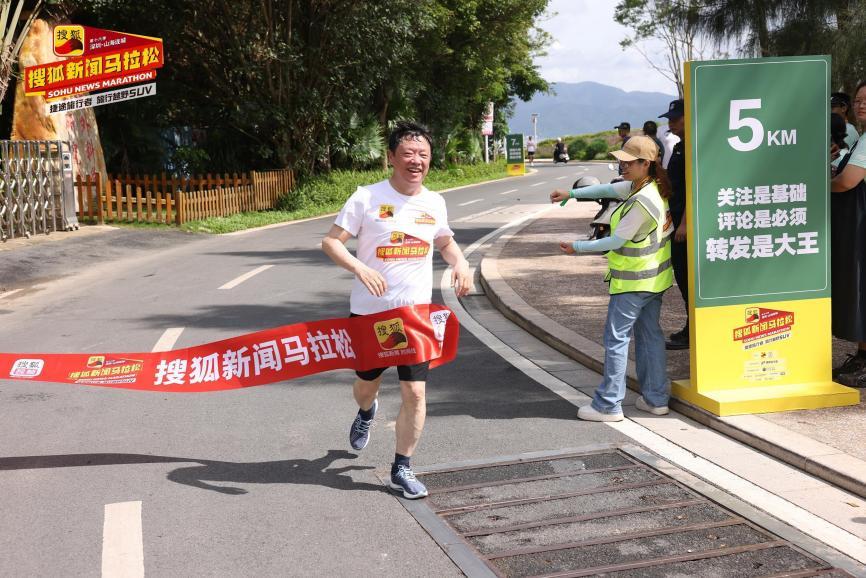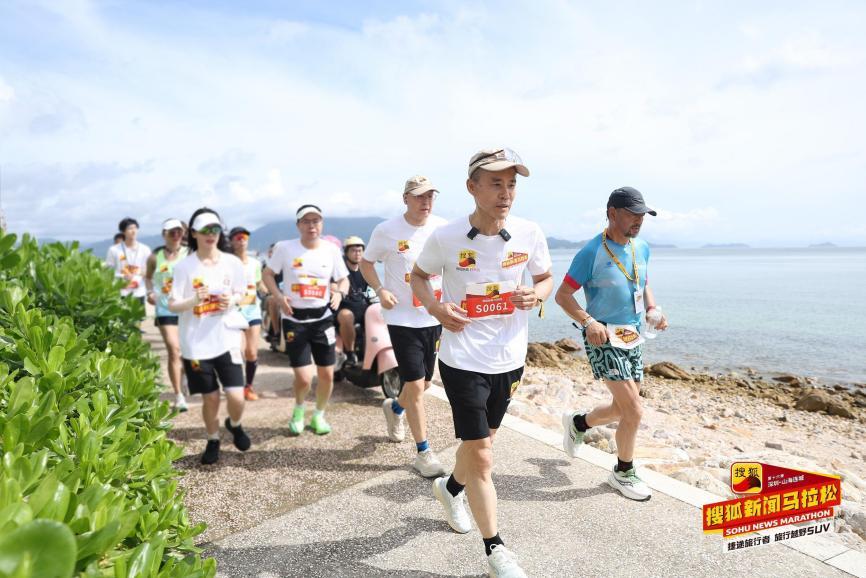 此次搜狐新闻马拉松来到素有“中国最美山海赛道”之称的大鹏鹿嘴碧道。当天早上8点左右,大咖跑团们在山海连城间集结完毕。张朝阳喊出“跑步使人干净”的口号,率先开跑。他向跑友们推广先慢后快小步高频的“准静态跑步模式”,笑称自己今天的任务是压住速度,只有慢才能跑得远。