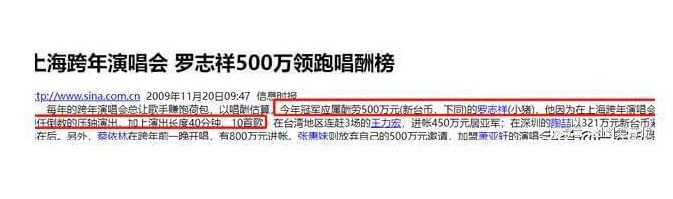 罗志祥在上海参加跨年晚会,40分钟演唱了十首歌曲,足足赚了五百万万元,这样折合成时薪就是七百五十万。