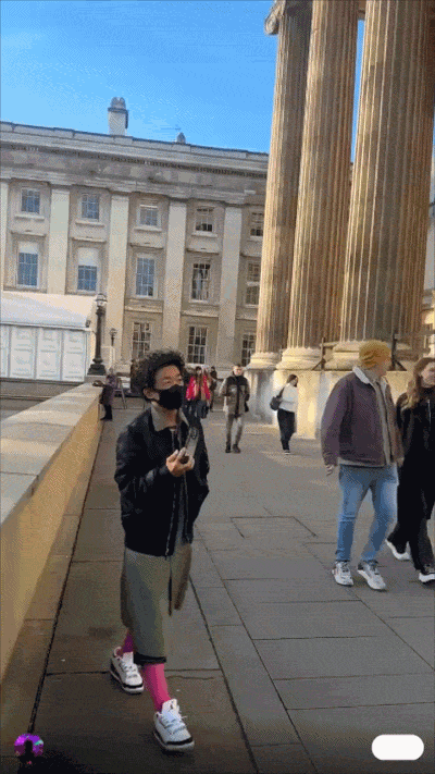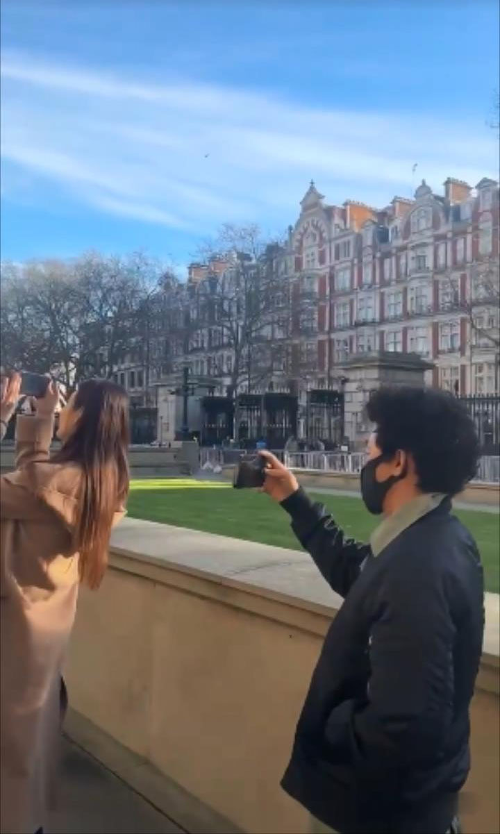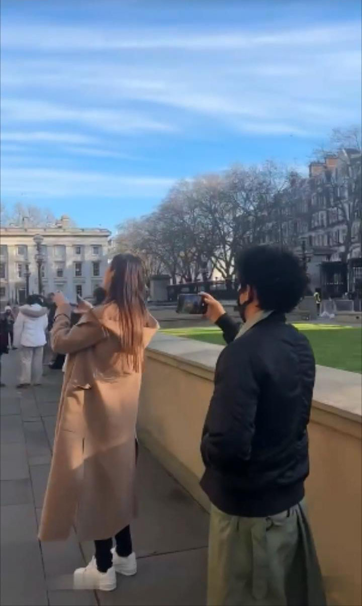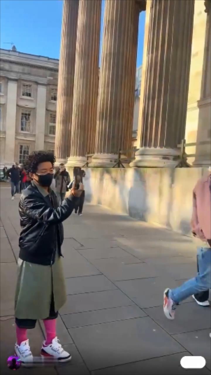 刘昊然与王宝强连戏服跟造型都没有换,直接就在英国街头游玩。