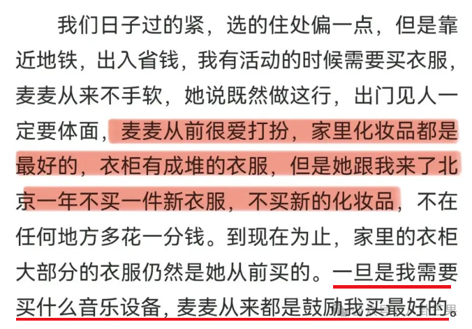 ③以下重点要展开的【大量关键信息的缺失】。所有能体现麦琳付出和李行亮亏欠的大事都极少提及,导致了双方信息的严重失衡。