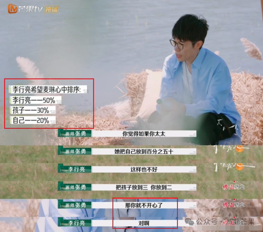 至于麦琳,她上节目的目的是帮李行亮翻红,让家庭利益最大化。所以她没有具体说李行亮的不好,只是笼统地说他不够关心自己,说自己付出很多。笼统是没有力量的。我估计她也是看节目才会知道李行亮在备采间具体地蛐蛐了她那么多。