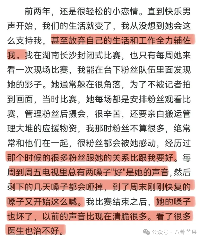 在李行亮的早年自述里,当时麦琳一边在深圳上班,一边周末坐便宜火车去长沙支持他,自己花钱给他准备应援物料,张罗采访等等。