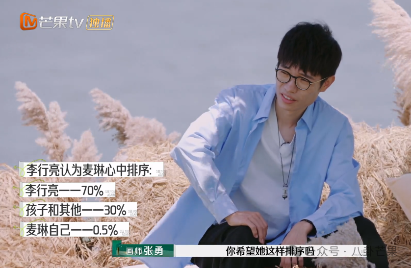 由此想到《再见爱人》里画画环节,他说麦琳现在的精力排序:70%是他,30%是孩子,0.5%给她自己,希望麦琳多关注她自己,听上去挺体贴的。