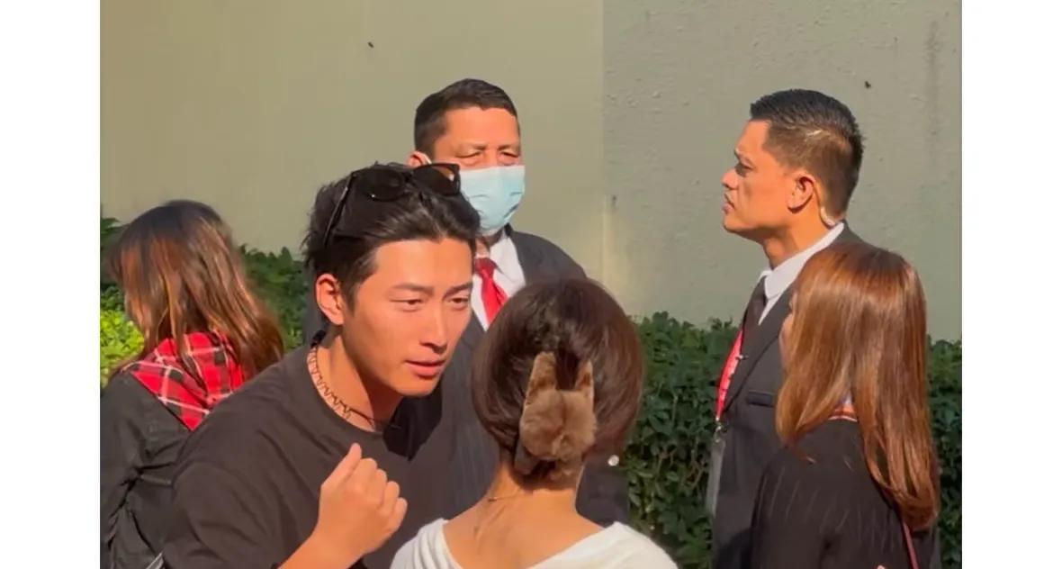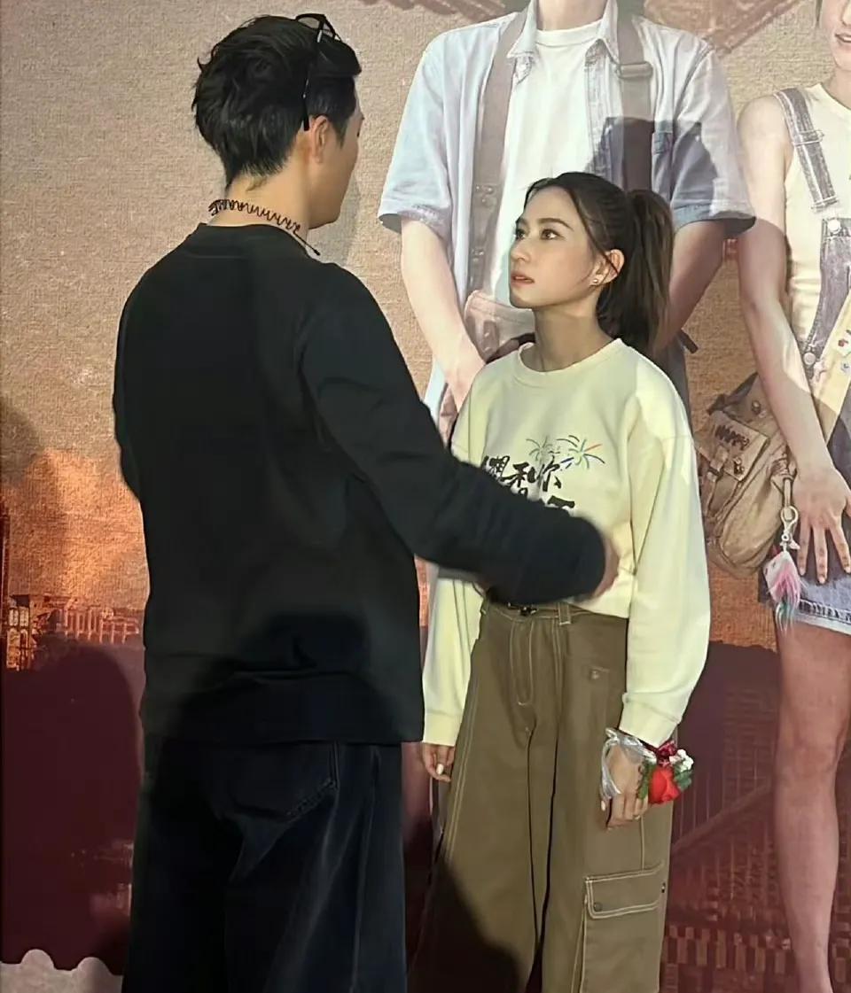 他在首映礼台下,跟四太和何超云聊天时被偶遇了,看他状态,瘦了也白了,一如既往阳光帅气。他和何超莲关系很稳定,前不久何超莲陪他去中国台北看医生还被偶遇了。