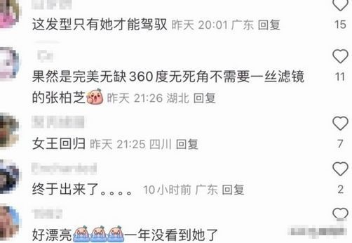 网友纷纷留言:“这发型只有她才能驾驭。果然是完美无缺360度无死角,不需要一丝滤镜的张柏芝。女王回归。终于出来了。好漂亮,一年没看到她了!”