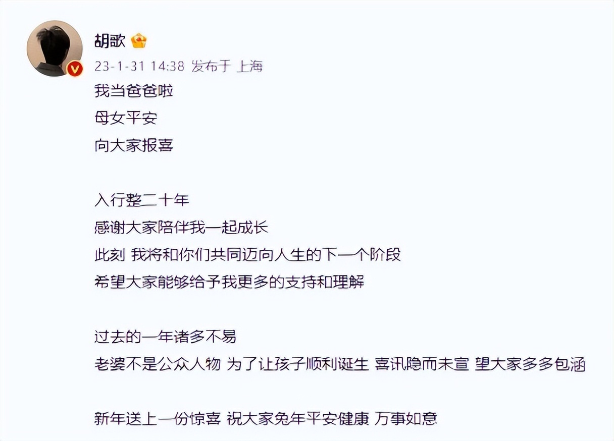 反观胡歌在2023年宣布了自己官宣生女的新闻,虽然粉丝纷纷送上了祝福,但大家还是对当初二人分手耿耿于怀。